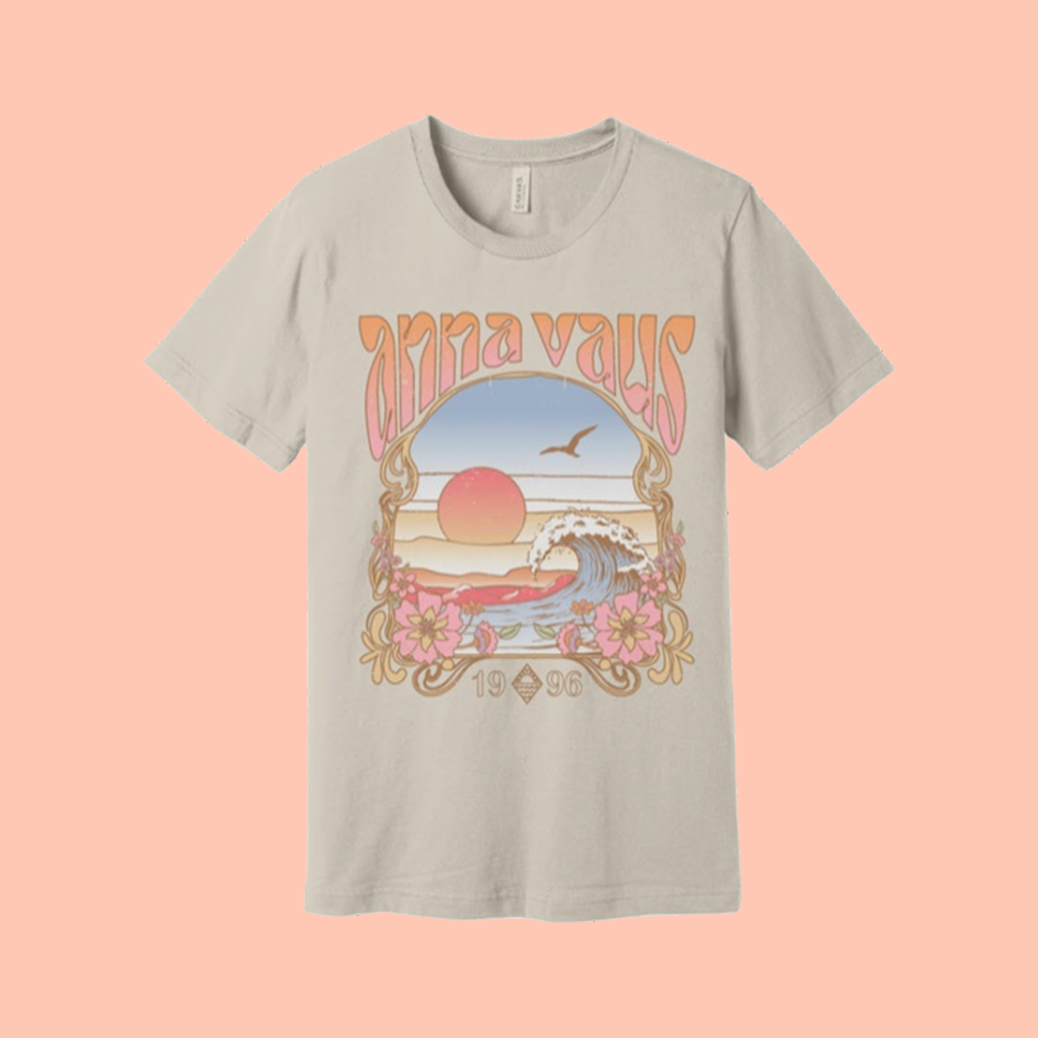 Bella+Canvas ivory tee with 1996 AV Beach tee design.